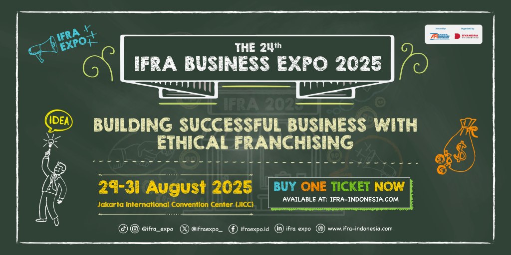 Diselenggarakan oleh Indonesia Franchise Association (AFI) bersama Dyandra Promosindo, the 24th IFRA Business Expo 2025 akan menghadirkan 240 perusahaan yang mewakili 350 merek terkemuka dari lebih dari 28 sektor industri, menjadikannya platform strategis yang menjanjikan peluang bisnis yang lebih besar bagi para pelaku usaha, investor, dan calon wirausahawan dengan berbagai latar belakang. Dengan mengangkat tema “Building Successful Business with Ethical Franchising.